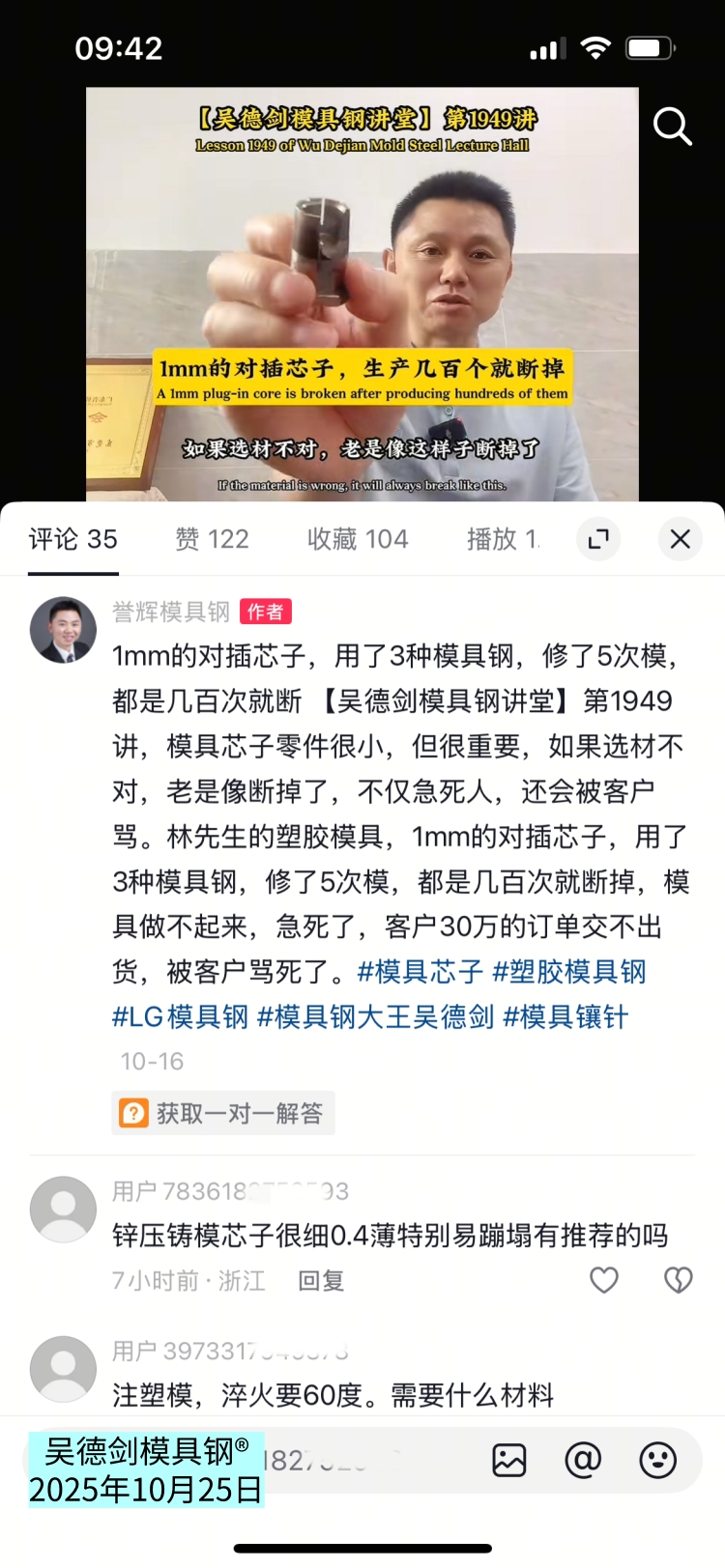 網(wǎng)友直播間問:鋅壓鑄模芯子,很細(xì)0.4薄,特別易蹦塌,有推薦的嗎?