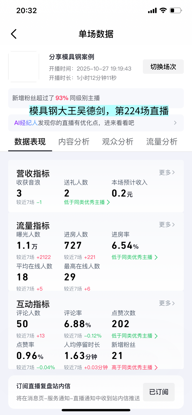 2025年10月27日,我做了1小時的直播,這是我第224場直播。