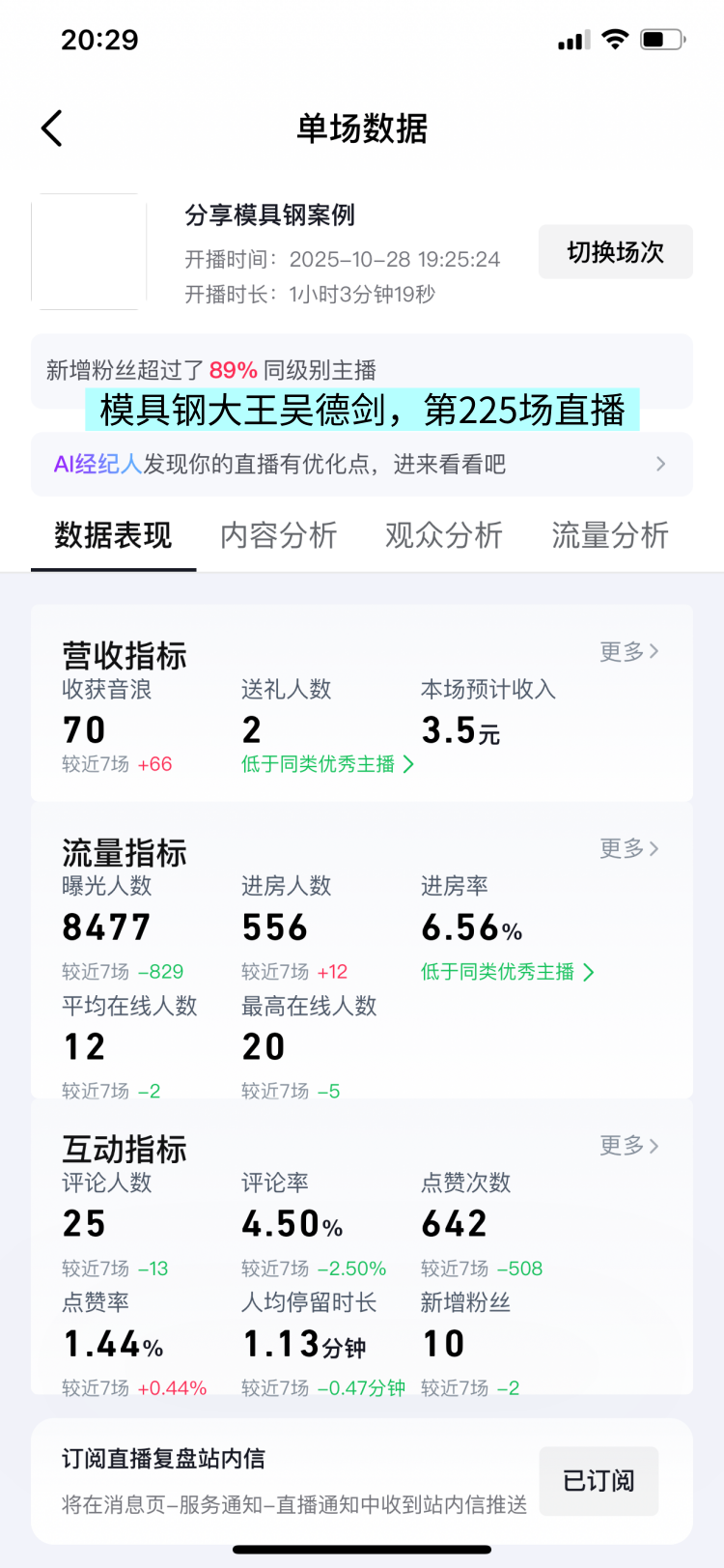 2025年10月28日,我做了1小時的直播,這是我第225場直播。