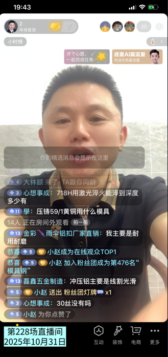 第228場直播間網(wǎng)友問,壓鑄59/1黃銅用什么模具鋼?
