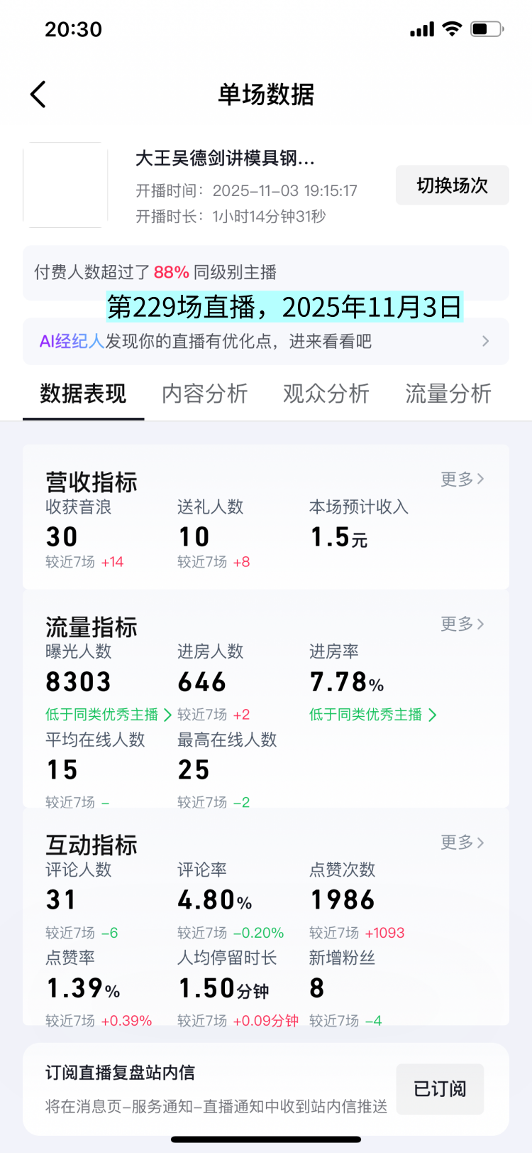 2025年11月4日,我做了1小時(shí)的直播,這是我第229場直播。